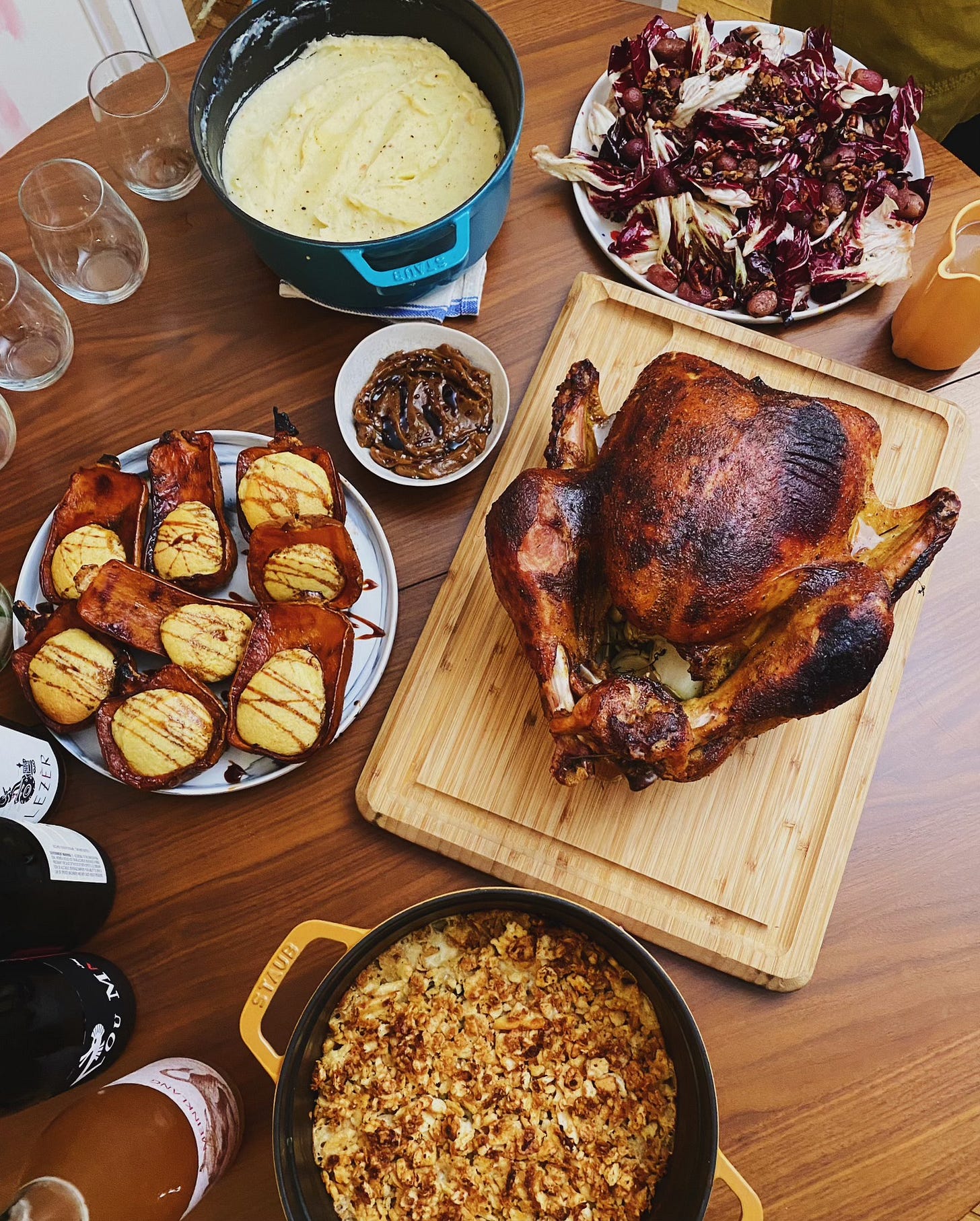 The low and slow cooking method gently and evenly cooks the turkey, keeping the white meat moist while allowing the connective tissue in the dark meat enough time to break down and become tender. It’s finished with a molasses glaze and blasted in a hot oven to deeply brown the skin for a picture-perfect finishing touch. Find a full video of how to make it on my instagram.